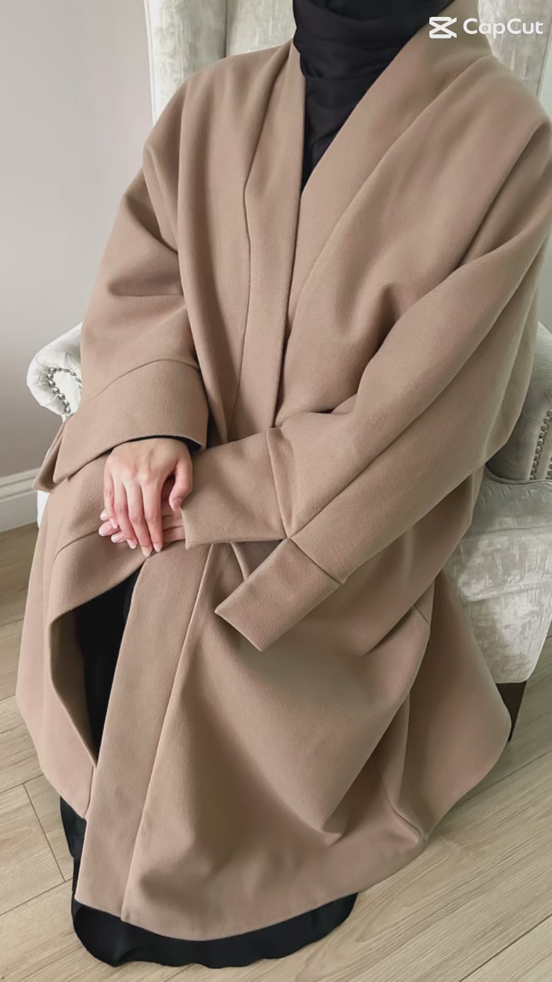 This Abaya Coat is perfect for the stylish Muslimah who seeks warmth and comfort. Available in 6 colours, this minimalist coat features hidden pockets and sleeve border split that can be turned over for a uni look. Made of 95% polyester and 5% elastane, this coat provides a comfortable fit for women of all sizes as it is designed to be oversized with an approximate length of 135cm. It's perfect to wear outdoors during the colder months while keeping up with your modest fashion style.